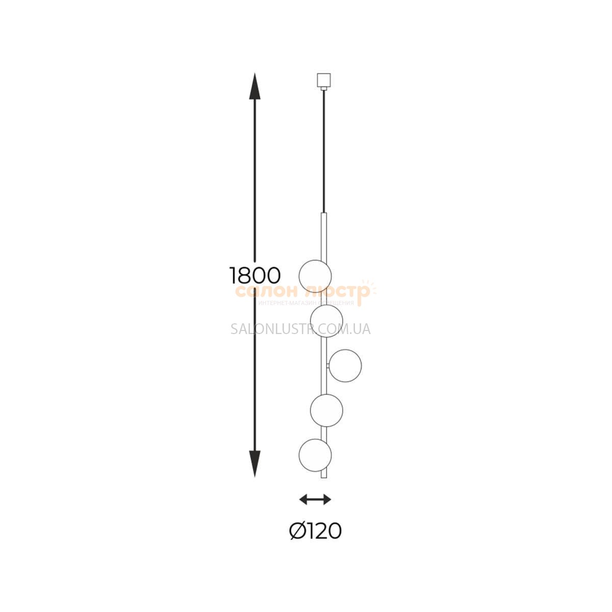 Высота: 180 см; ширина: 12 см; лампа: 5 х G9 х 40 Вт.