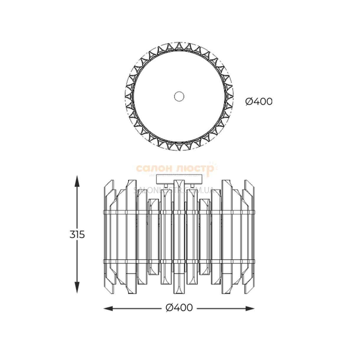 Высота: 31,5 см; ширина: 40 см; лампа: 6 х G9 х 40 Вт.