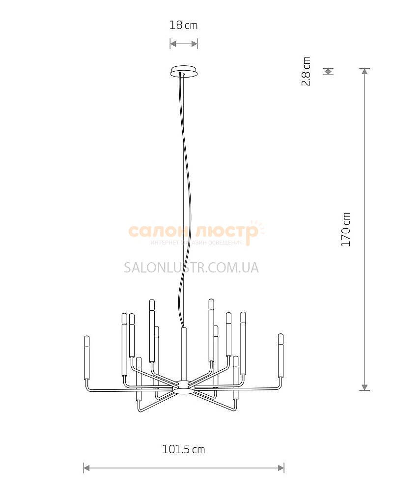 Высота: 50-170 см; диаметр: 101,5 см; лампы: 12 х Е-14 х 60 Вт.