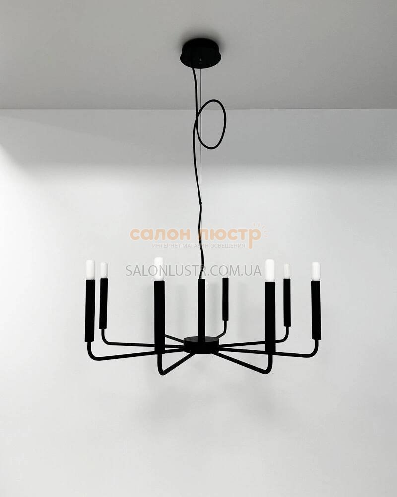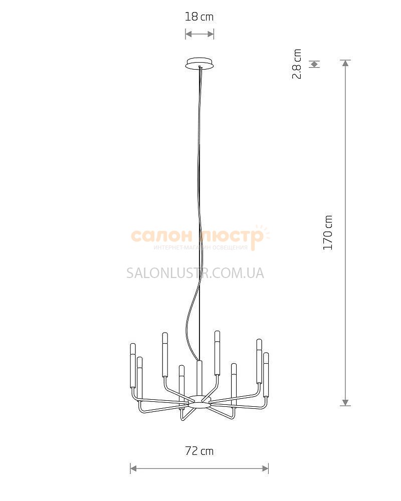 Высота: 50-170 см; диаметр: 72 см; лампы: 8 х Е-14 х 60 Вт.