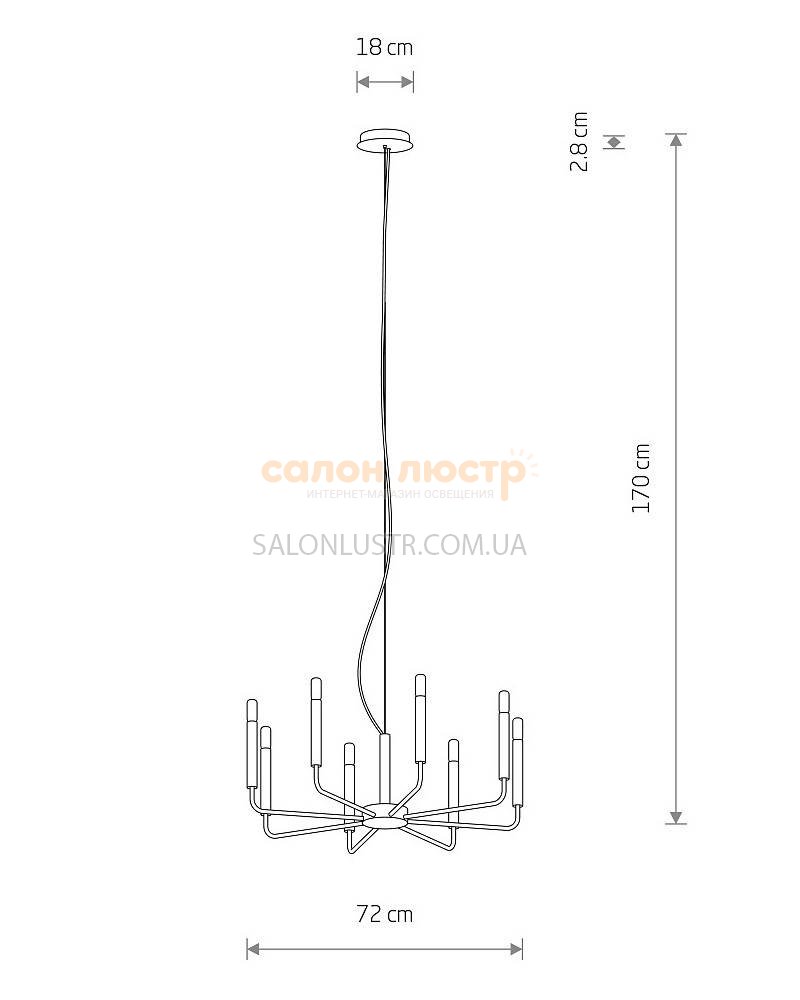 Высота: 50-170 см; диаметр: 103 см; лампы: 12 х Е-14 х 60 Вт.