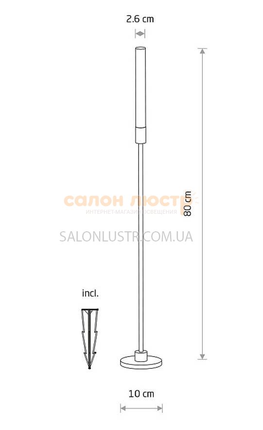 Высота: 100 см; ширина: 2,6 см; лампы: 1 х LED 3W.