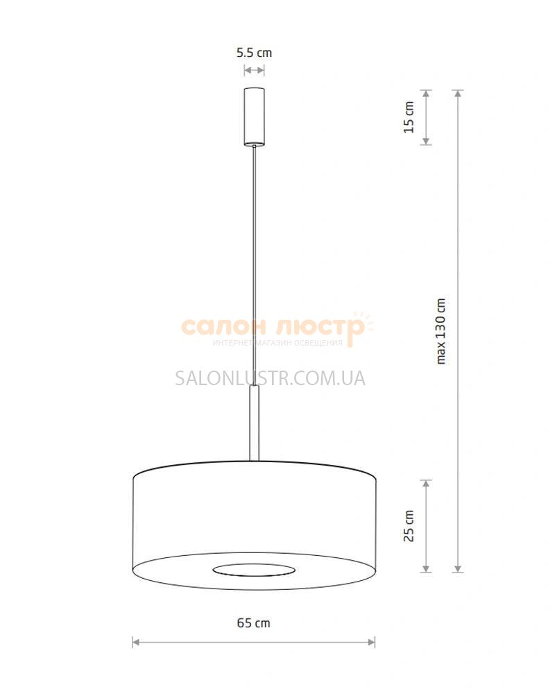 Высота: 50-130 см; диаметр: 65 см; лампы: 1 х E-27 х 25 Вт LED.