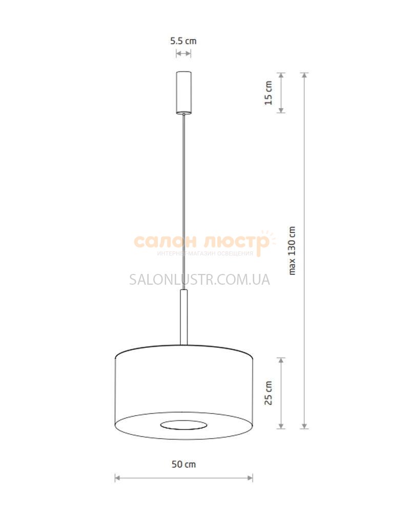Высота: 50-130 см; диаметр: 50 см; лампы: 1 х E-27 х 25 Вт LED.