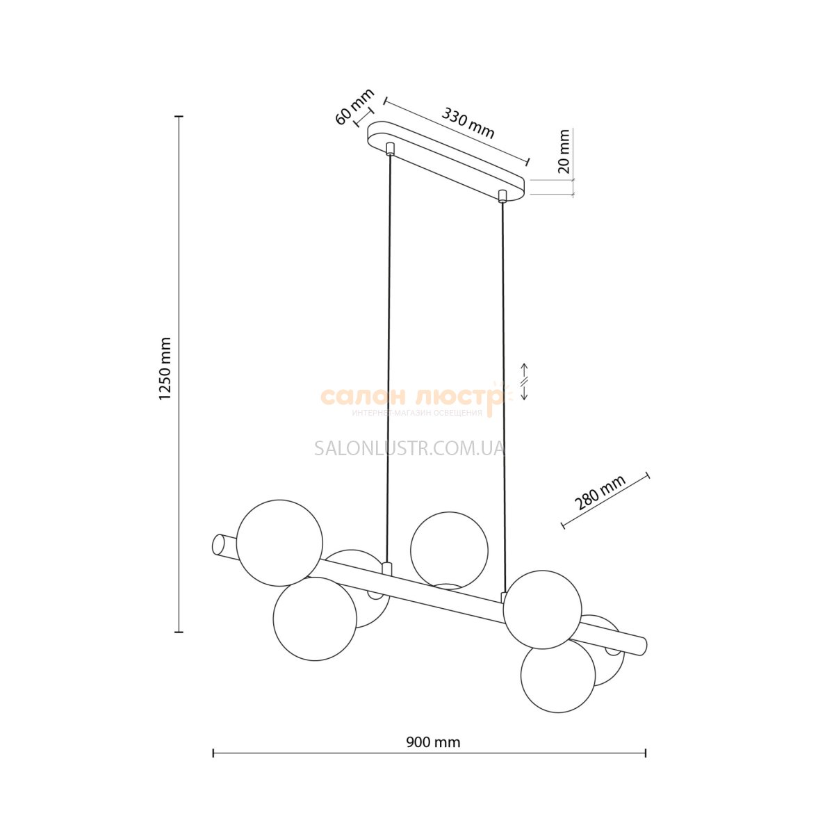 Высота: 50-115 см; ширина: 63х27 см; лампа: 5 х G9 х 6 Вт LED.