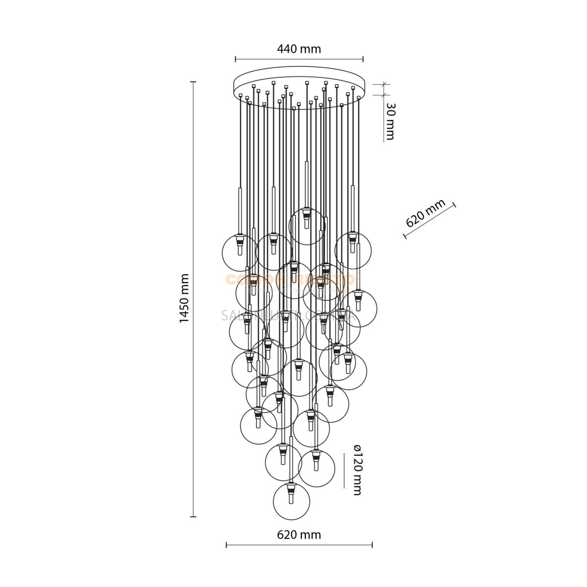 Высота: 50-145 см; ширина:52 см; лампы: 17 х G9 х 6 Вт LED.