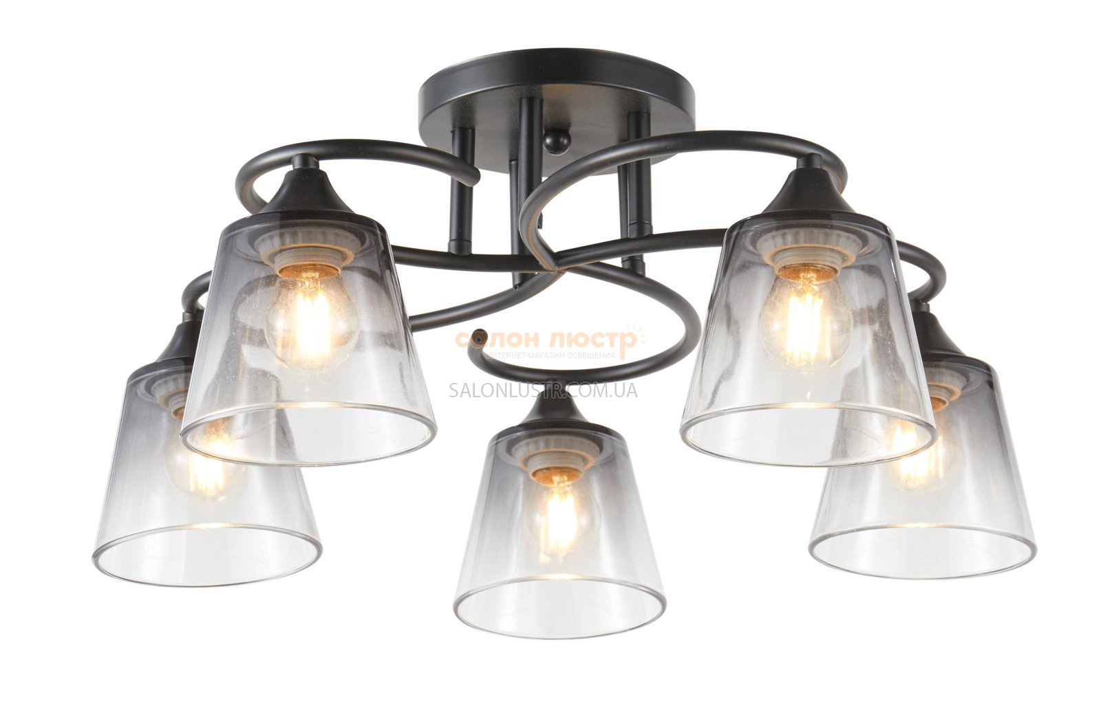 Высота: 23 см; ширина: 50 см; лампы: 5 х Е27 х 60 Вт.