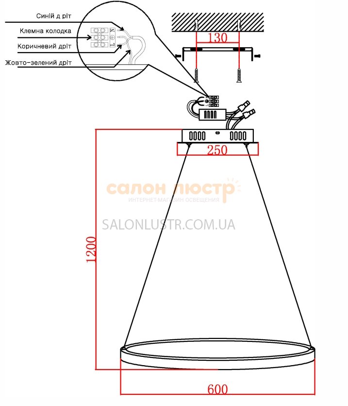 Высота: 120 см; диаметр: 60 см; лампы: LED х 34 Вт(4000K);