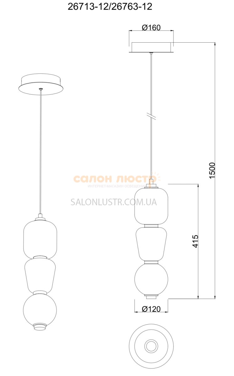 Высота: 50-150 см; диаметр: 16 см; лампы: LED х 12 Вт(4000K);
