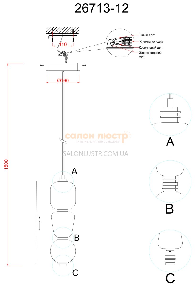 Высота: 50-150 см; диаметр: 16 см; лампы: LED х 12 Вт(4000K).