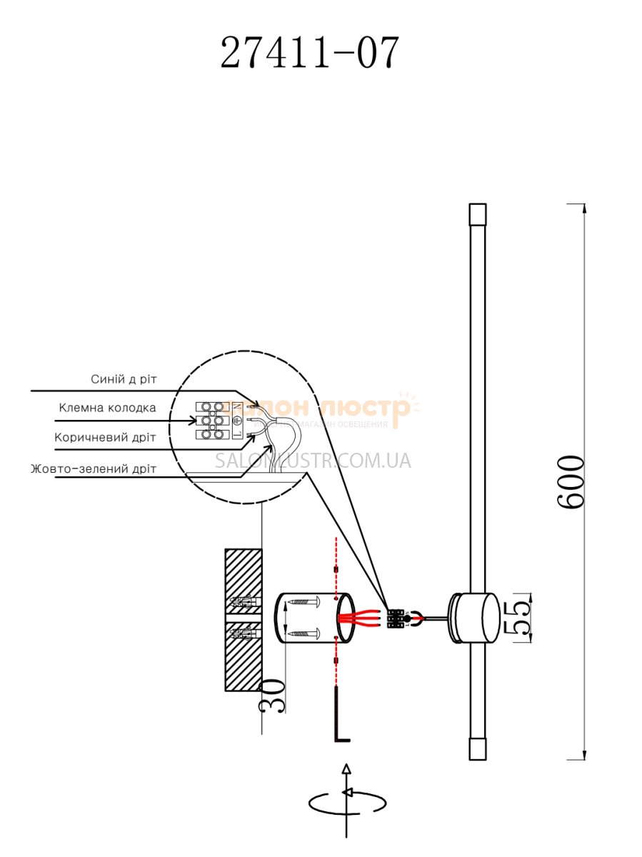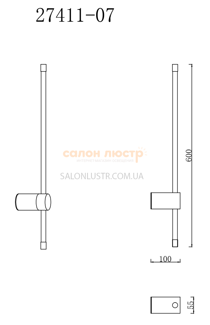 Высота: 60 см; ширина: 5,5 см; лампы: LED х 7 Вт(4000K);