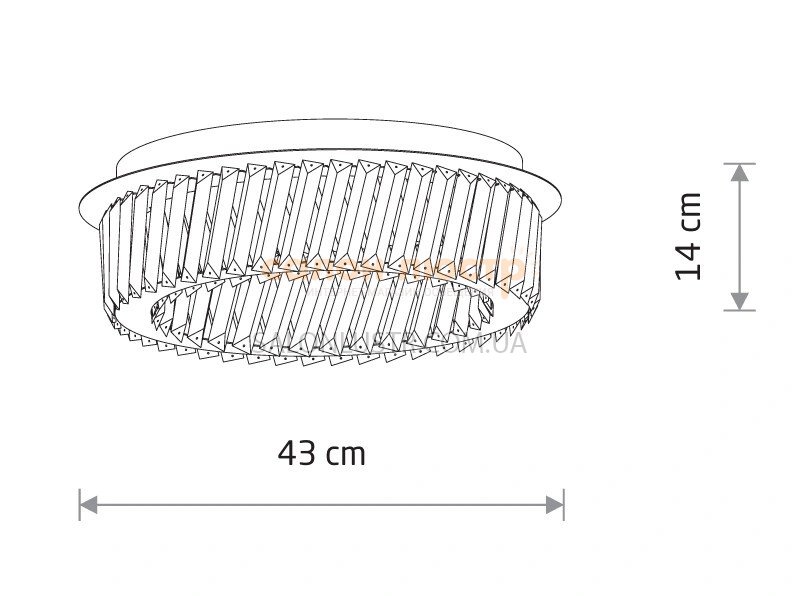 Высота: 14 см; ширина: 43 см; лампы: 1 х LED х 20 Вт(3000К, 1800Лм).
