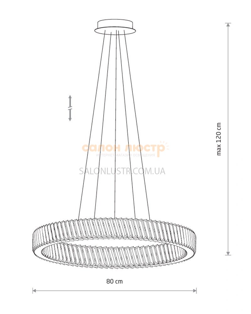 Высота: 50-120 см; ширина: 80 см; лампы: 1 х LED х 38 Вт(3000К, 3400Лм).