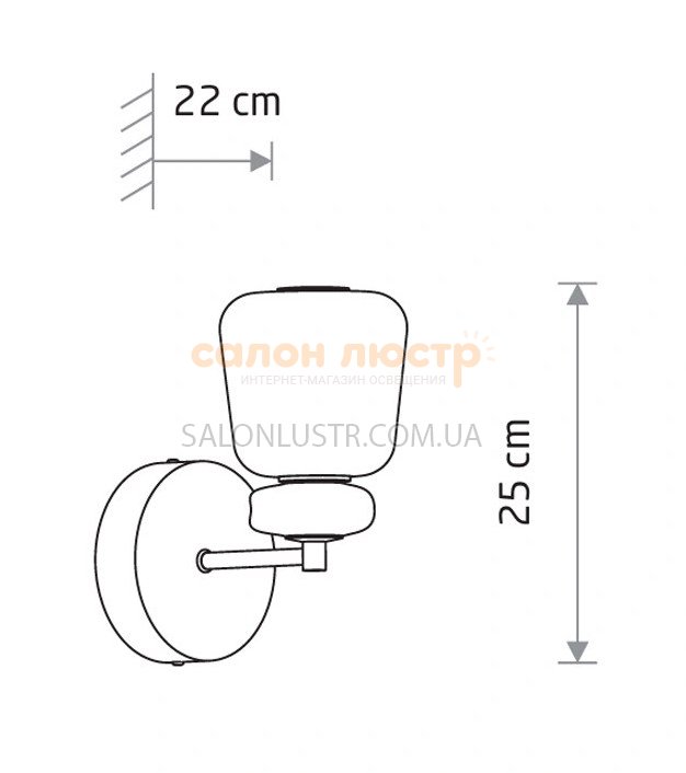 Высота: 22 см; ширина: 17 см; лампы: 1 х LED х 8 Вт(3000К, 650Лм).