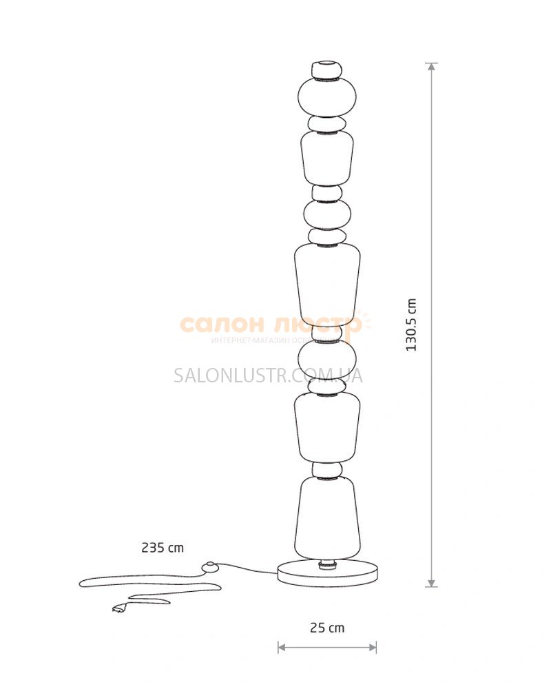 Высота: 130,5 см; ширина: 25 см; лампы: 1 х LED х 34 Вт(3000К, 2700Лм).