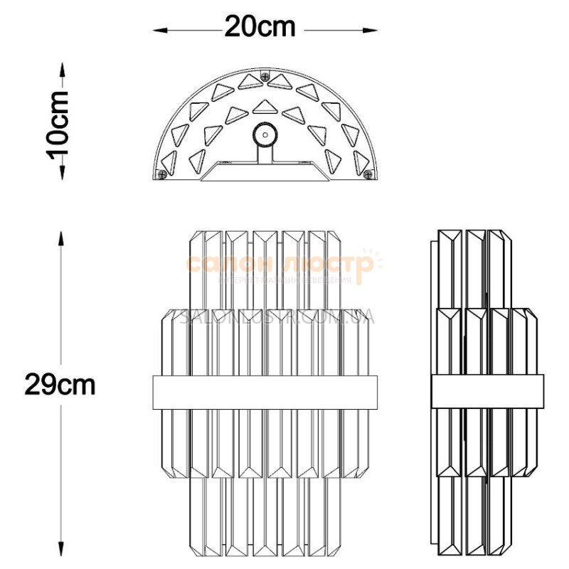 Высота: 29 см; ширина: 20 см; лампа: 2 х G9 х 40 Вт.