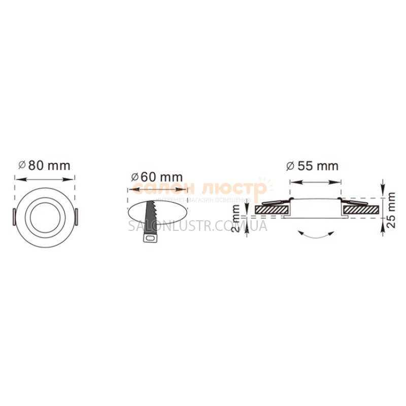 Высота: 2,5 см; диаметр: 8 см; лампы: 1 х GU10 х 50 Вт.