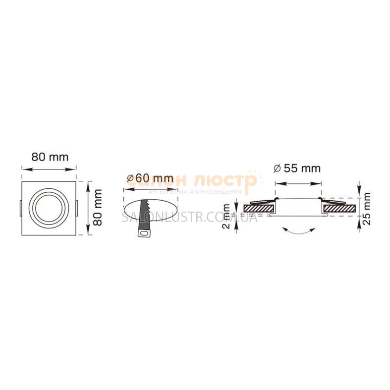 Высота: 2,5 см; диаметр: 8 см; лампы: 1 х GU10 х 50 Вт.