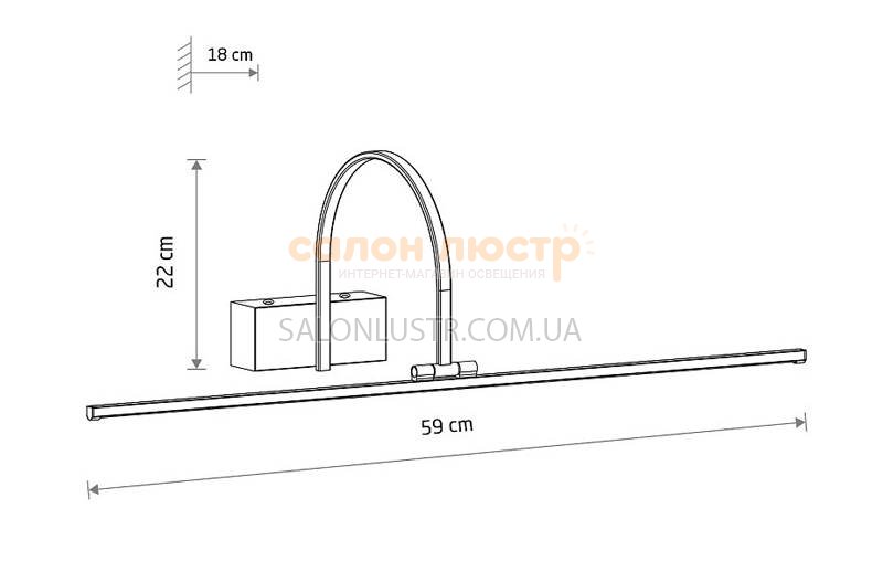 Высота: 22 см; ширина: 59 см; отступ: 18 см; лампы: LED х 6 Вт(550Лм; 3000К).