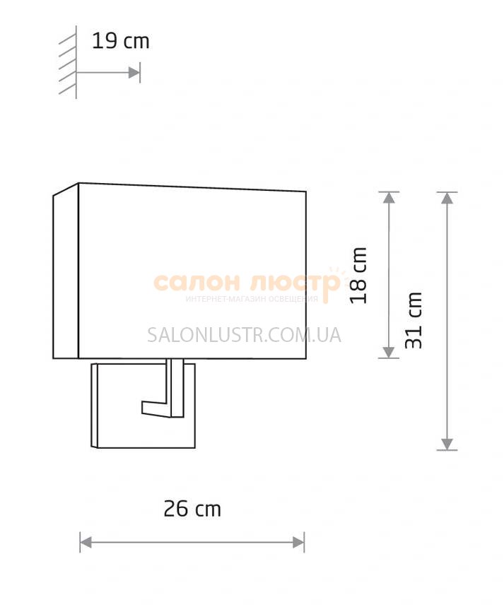 Высота: 31 см; ширина: 26 см; отступ: 19 см; лампы: 1 х Е27 х 60 Вт.