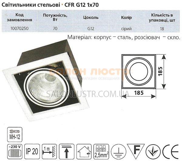 Диаметр: 185x185мм; лампа: 1хMH G12 70W.