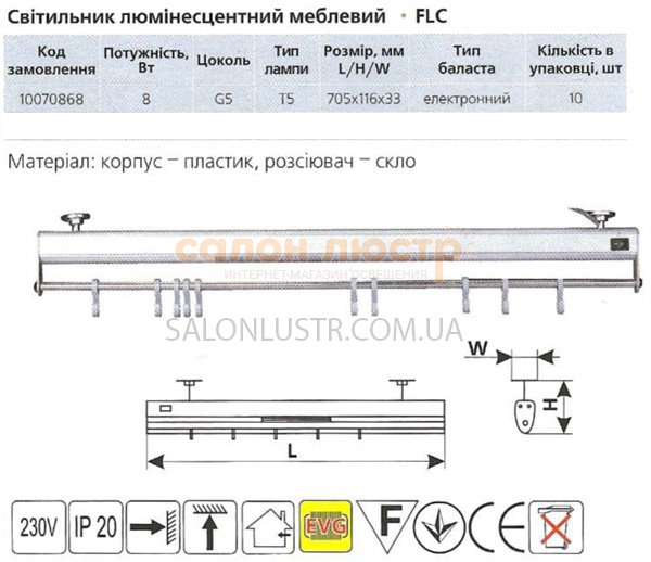 Светильник люминесцентный мебельный FLC 8W FLC 8W