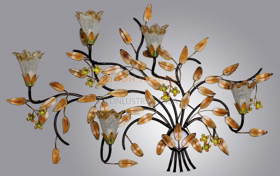 Высота: 70 см; ширина: 115 см; лампы: 5 х Е-14 х 60 Вт.