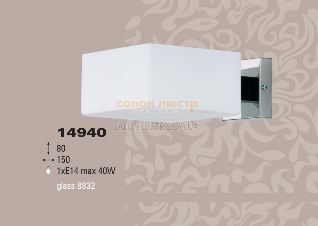 Высота: 8 см; диаметр: 15 см; лампы: 1 х Е14 х 60 Вт.