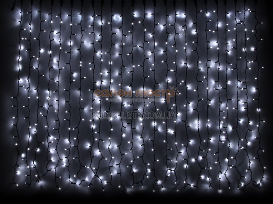 - DELUXШирина: 2 метра; высота: 7 метров; Цвет светодиодов: белый; цвет кабеля: белый; Количество светодиодов: 1520 шт.