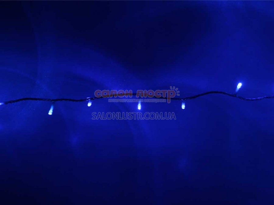 Длина: 10 метров; Цвет светодиодов: синий; цвет кабеля: белый; Количество светодиодов: 200 шт; Мощность: 12 Вт; Напряжение: 230 В; Класс защиты: IP44; Возможность соединения до 8 гирлянд от одного источника питания: да; Возможность подключения контроллера: да;; Диаметр кабеля: 3,3 мм; Сечение кабеля: 0,5 кв. мм; Материал кабеля: резина/медь.