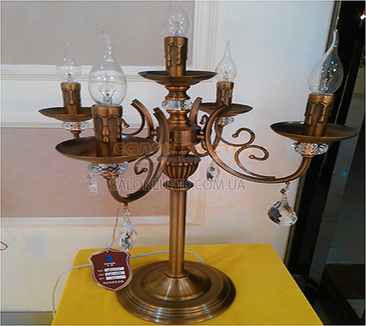 Высота: 58 см; ширина: 45 см; лампы: 5 х Е-14 х 60 Вт.