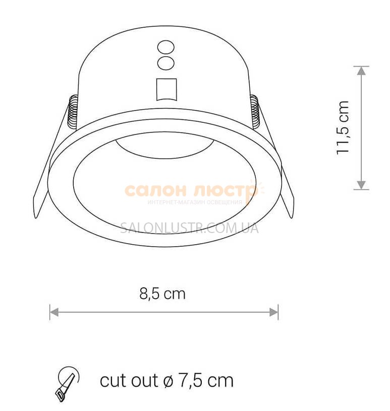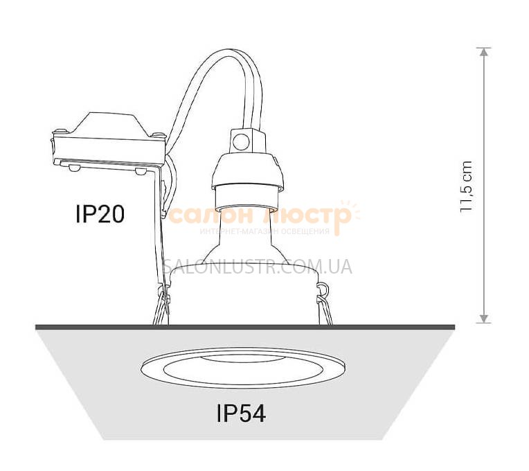 Высота: 11,5 см; диаметр: 8,5 см; лампы: 1 х GU10 х 15Вт LED.