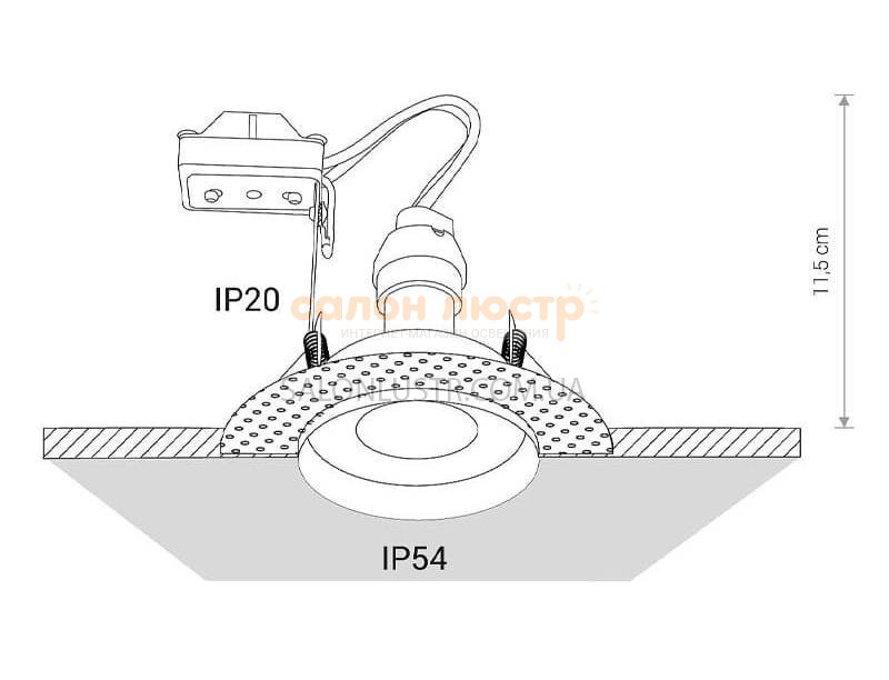 Высота: 11,5 см; диаметр: 12,5 см; лампы: 1 х GU10 15Вт LED.