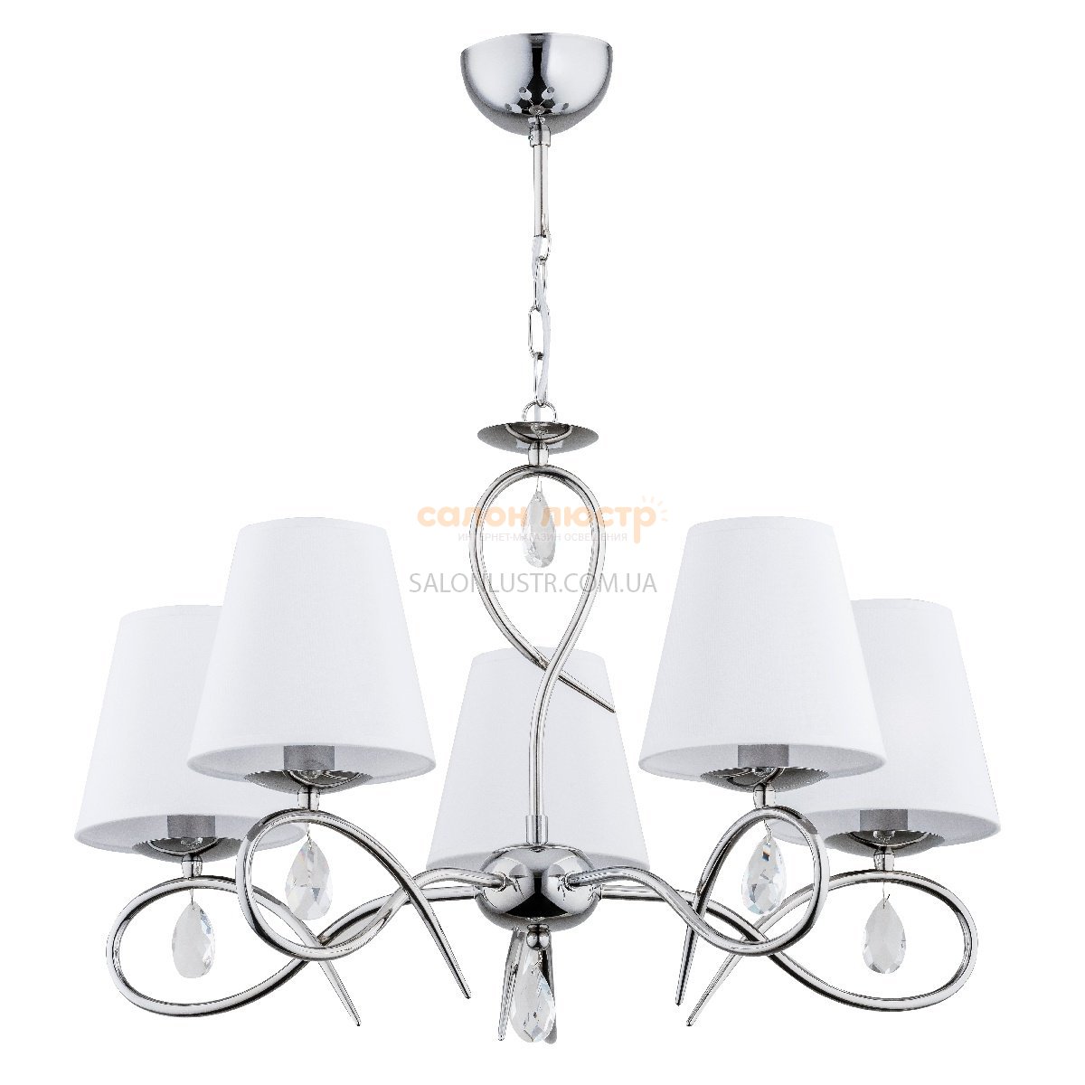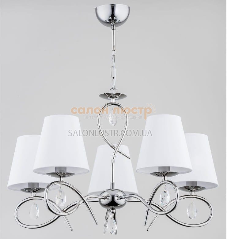 Высота: 63 см; ширина: 58 см; лампы: 5 х Е14 х 40 Вт.