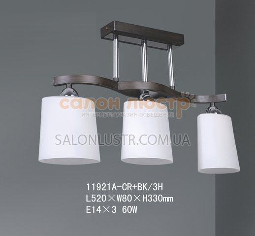 Высота: 33 см; длина: 56 см; ширина: 8 см; лампы: 3 х Е14 х 60 Вт.