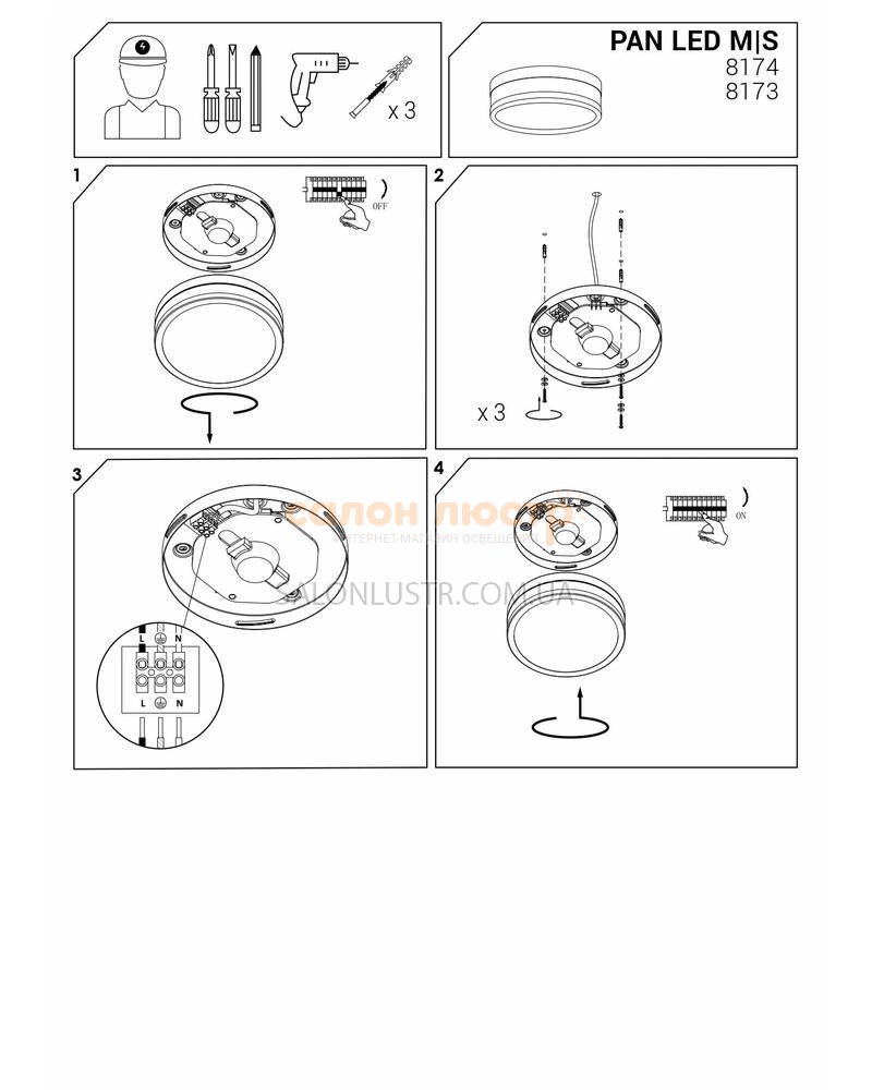 Высота: 8,5 см; ширина: 30 см; лампы: LED х 12 Вт х 530Лм х 4000K.