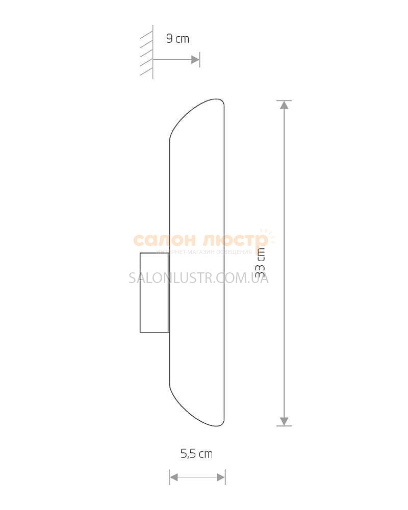 Высота: 33 см; ширина: 5,5 см; отступ: 9 см; лампы: 2 х GU10 х 10 Вт LED.