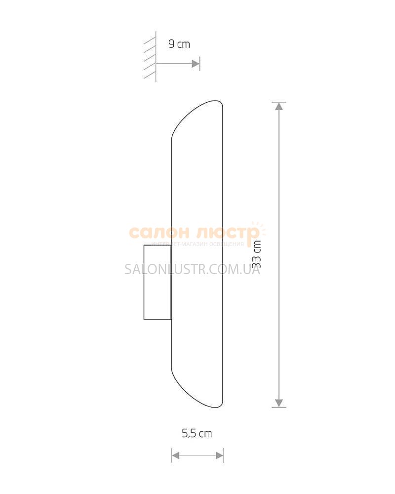 Высота: 33 см; ширина: 5,5 см; отступ: 9 см; лампы: 2 х GU10 х 10 Вт LED.