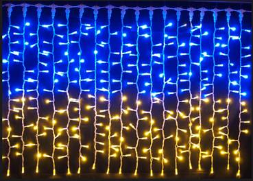 Гирлянда светодиодная Delux Curtain UA производства компании Delux,выполнена в цветах национального флага Украины,предназначена для наружного праздничного оформления и декоративной подсветки карнизов офисов, домов, витрин магазинов, гостиниц, ресторанов, автозаправок и других объектов к которым нужно привлечь внимание или просто порадовать оригинальной иллюминацией в канун новогодних праздников.