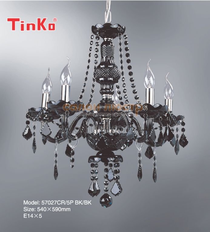 Люстра класична виробництва компанії TINKO; Матеріал: метал/стекло; Колір: хром/чорний; Декоративний елемент: кришталики чорного кольору; Висота: хв. 59 см; діаметр: 54 см; лампи: 5 х Е-14 х 60 Вт; кріплення: на гак.