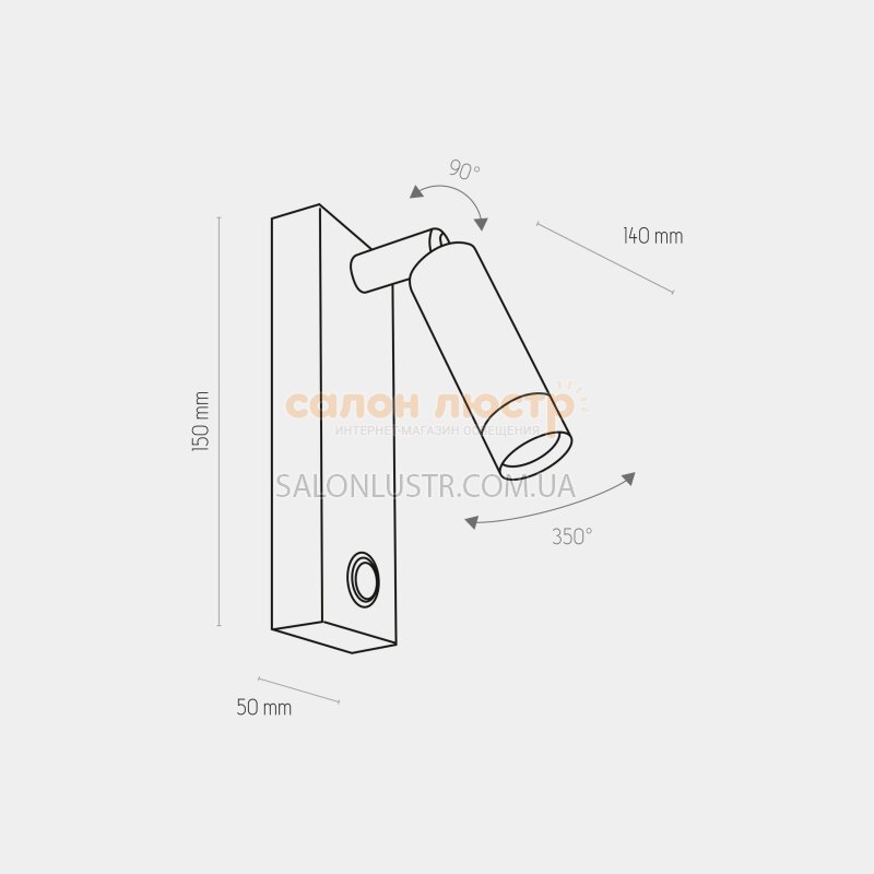 Висота: 15 см; ширина: 5 см; відступ: 14 см; лампи: LED 3 Вт;