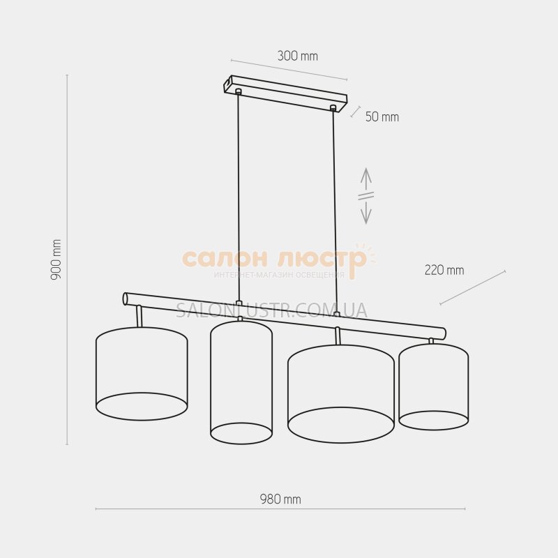 Висота: 60-90 см; ширина: 98 х 22 см; лампи: 4 х Е27 х 60 Вт. - TK LIGHTING