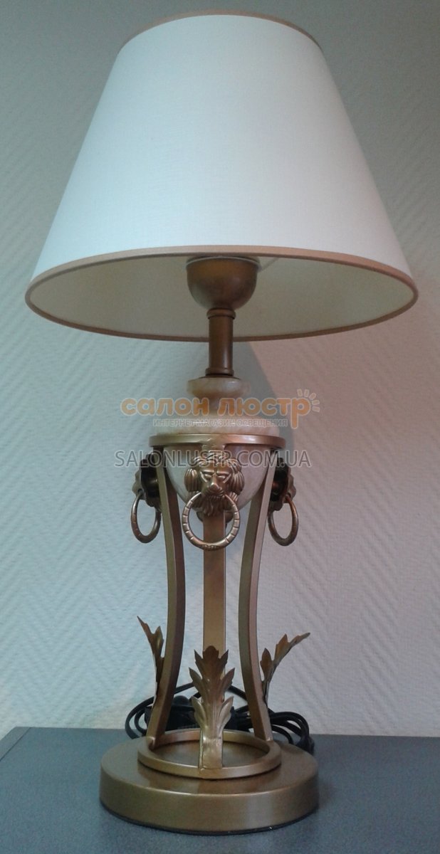 Настільна лампа виробництва компанії Tinko; Матеріал: метал/полімер/натуральний камінь; Плафон: полімер; Колір (підстави): античне золото; Колір (абажура): бежевий; Висота: 54 см; діаметр: 30 см; лампи: 1 х Е-27 х 60 Вт