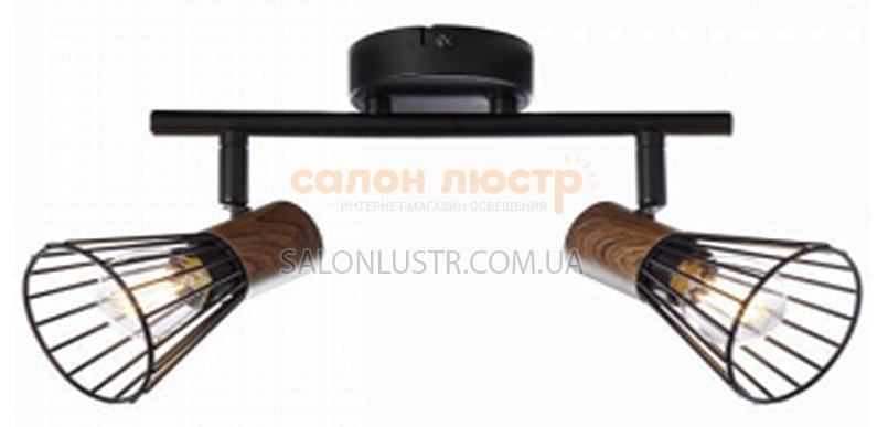 Люстра стельова виробництва компанії Sirius; Матеріал: метал; Колір підстави: чорний+дерево; Колір плафона: чорний; Довжина: 35 см; висота: 18 см; лампи: 2 х Е14 х 60 Вт.
