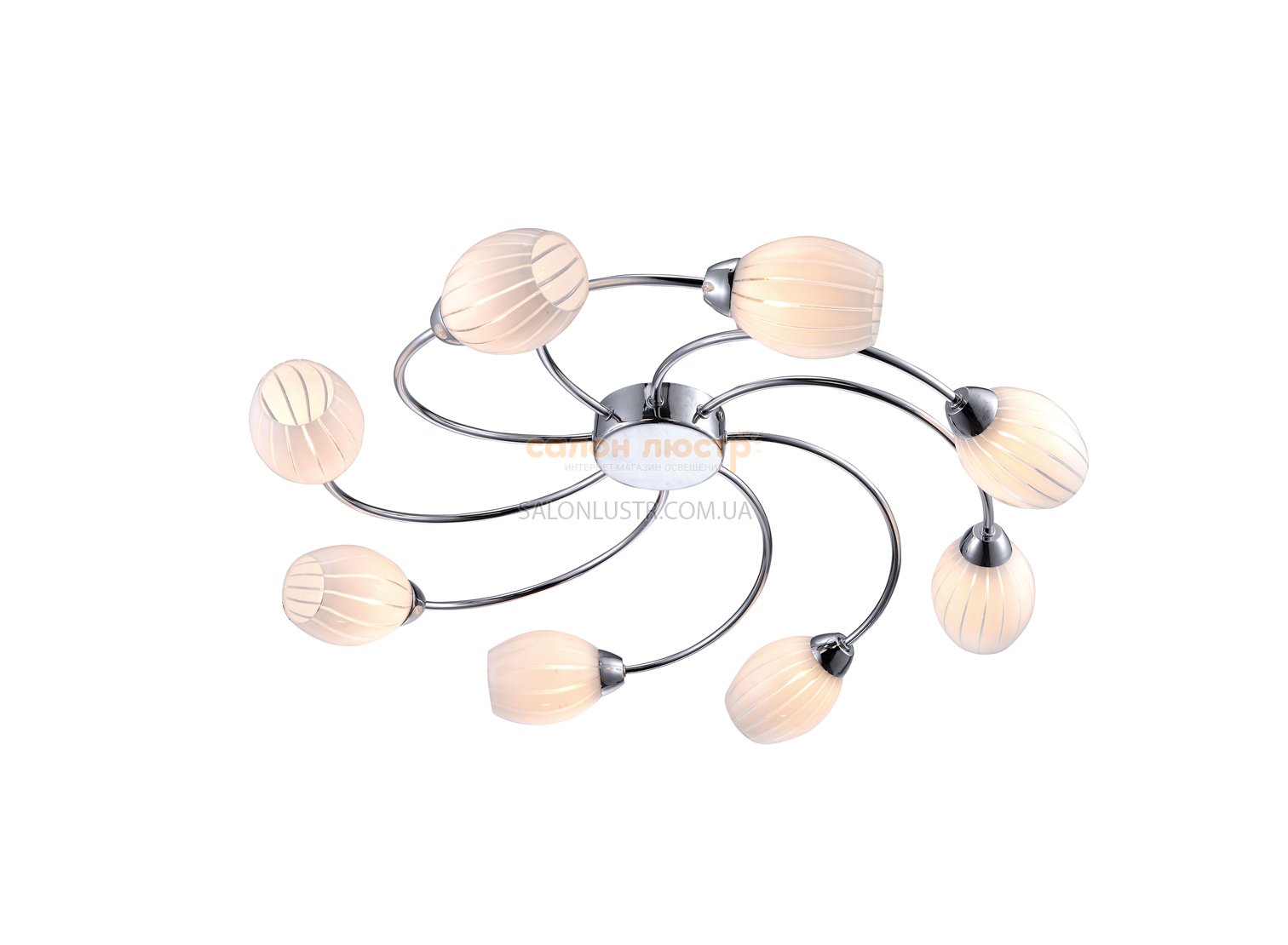 Висота: 13 см; діаметр: 62 см; лампи: 8 х Е-14 х 40 Вт.