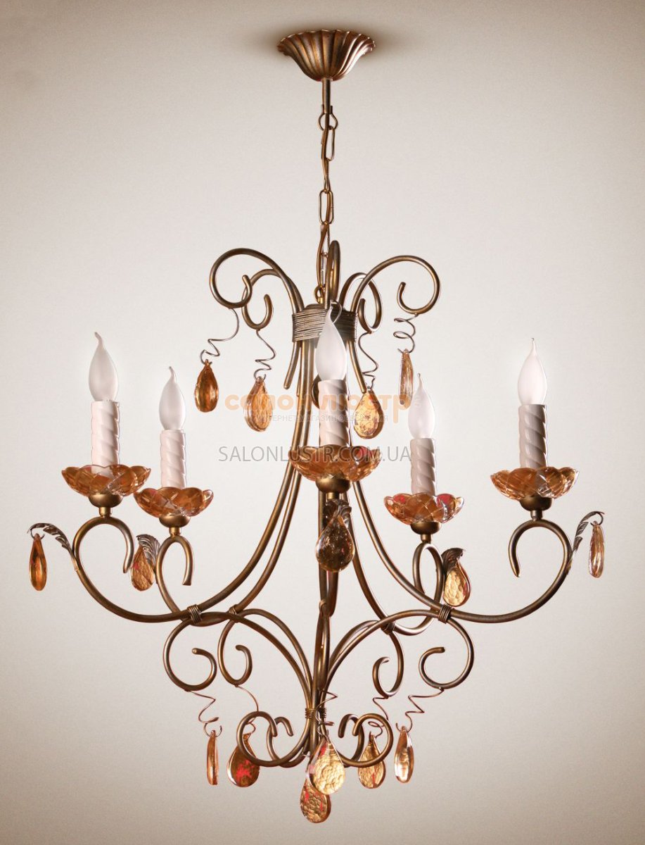 Висота: 80-100 см; діаметр: 66 см; лампи: 5 х Е-14 х 60 Вт.