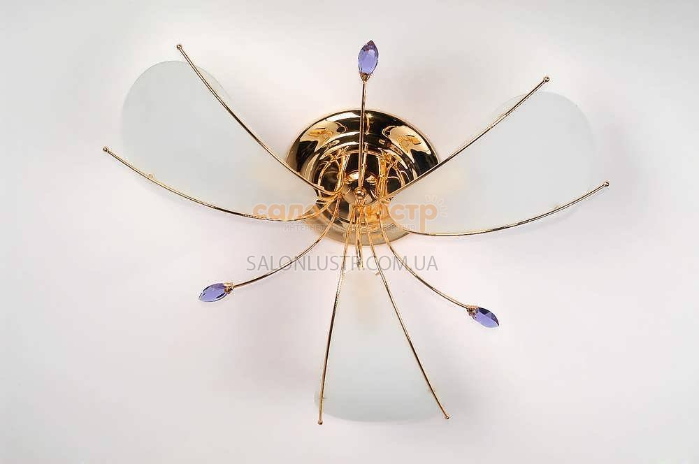 Люстра пристільна виробництва компанії Tinko; Матеріал: метал, скло; Колір підстави: золото(кришталь коричневий), хром(кришталь зелений) ; Колір плафона: білий матовий; Кріплення: на планку; Висота: 20 см; діаметр: 55 см; лампи: 3 х Е-14 х 60 Вт.