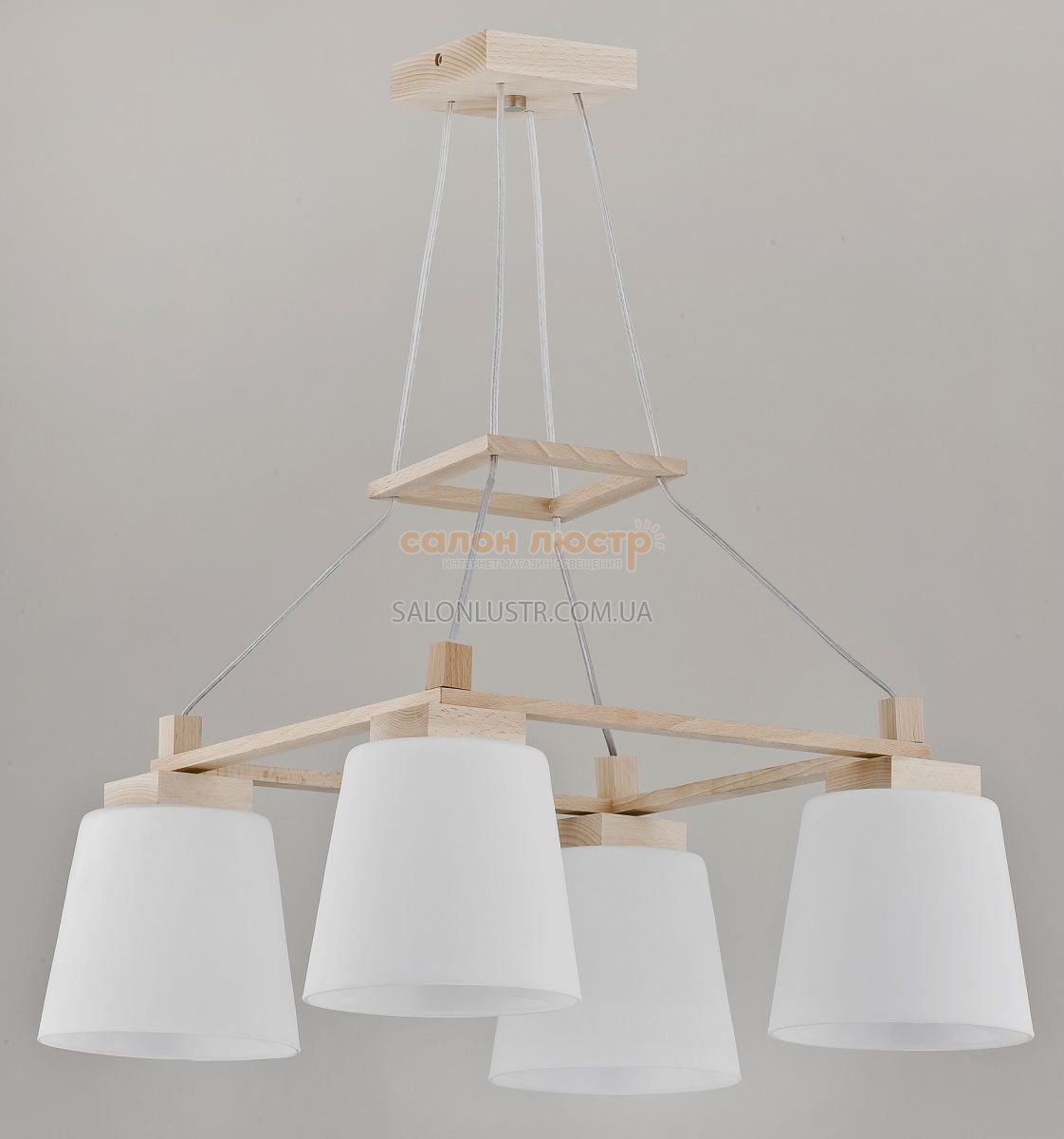 Висота: 65 см; ширина: 65 см; лампи: 4 х Е27 х 60 Вт.