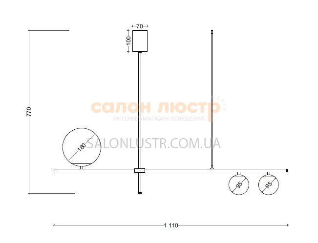 Висота: 50-130 см; довжина: 69х18 см; лампи: 3 х Е14 х 60 Вт. - УКРАЇНА
