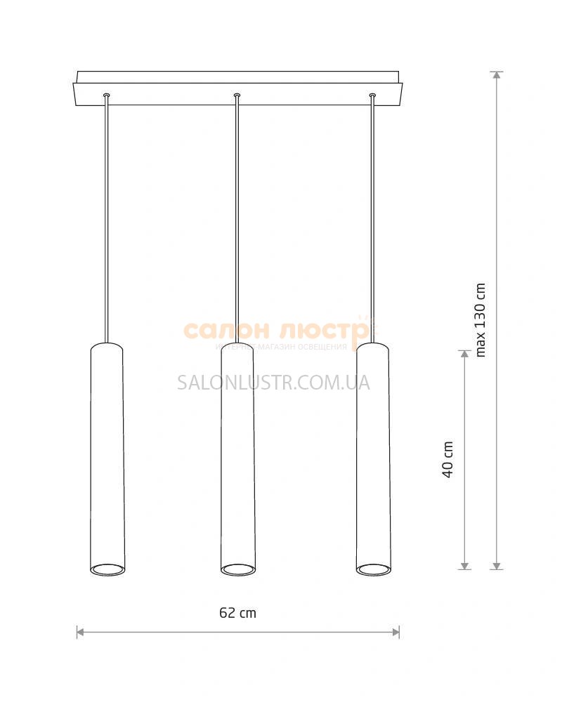 Висота: 50-130 см; діаметр: 62 см; лампи: 3 х GU10 х 35 Вт.